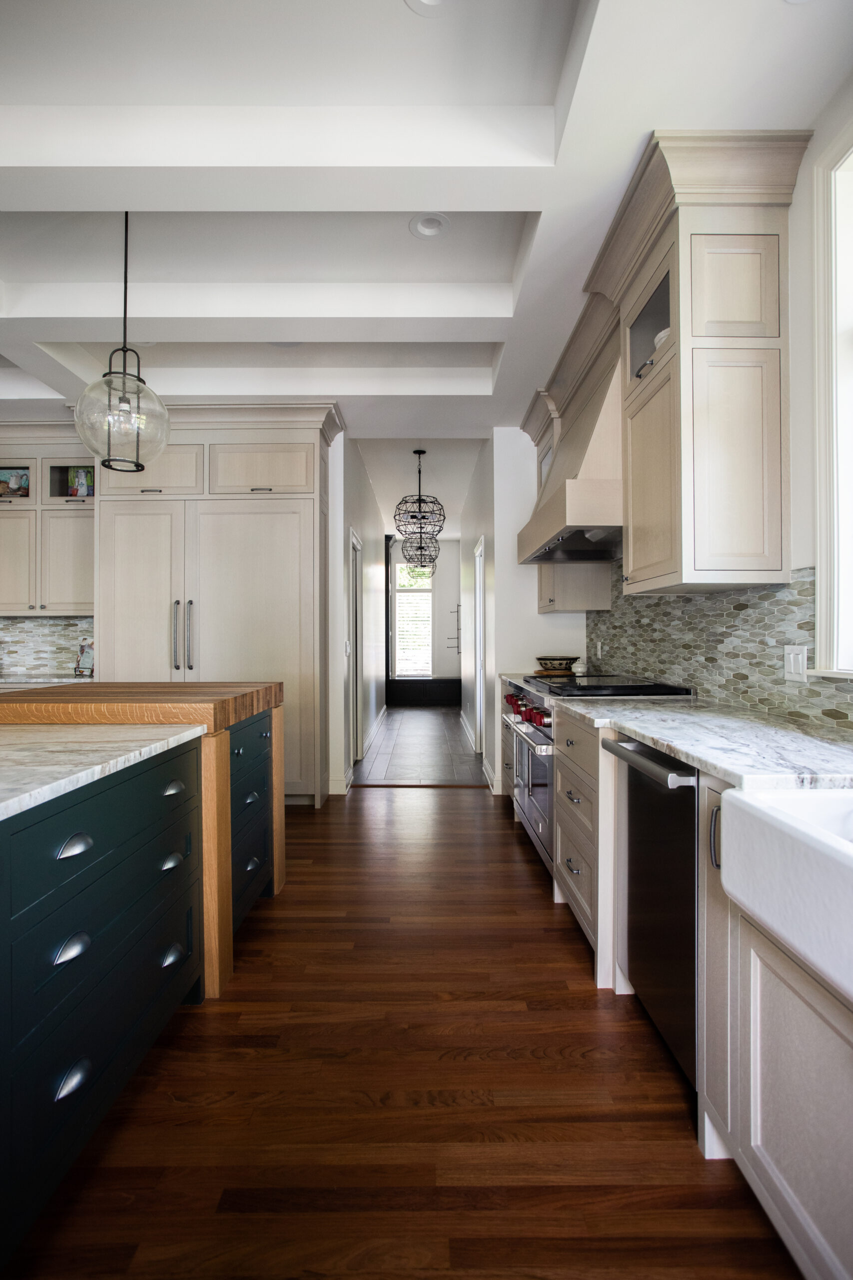 This remodel re-imagined the layout of the space by first designing a streamlined and transparent staircase to create a more cohesive connection on the main floor. The kitchen included a 48-inch range and an extra large island to accommodate multiple cooks.