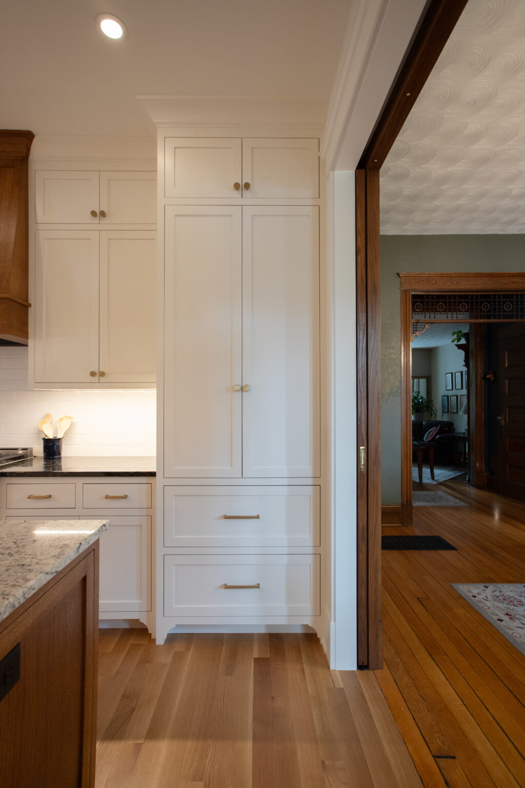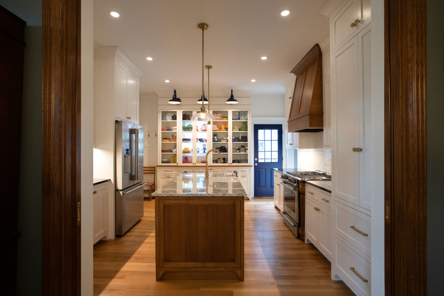 This remodel brings the kitchen into harmony with the home’s historic character, restoring its original charm while introducing practical, thoughtful updates. A custom-designed hidden pull-out spice rack and farmhouse double-basin porcelain sink offer functionality and refined detail, supporting a space that is both beautiful and well-suited to everyday life.