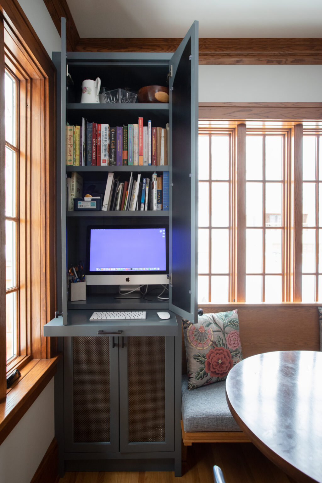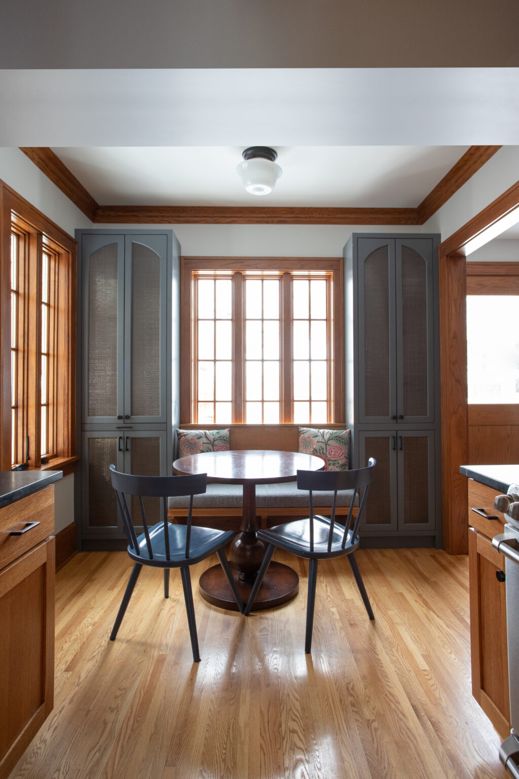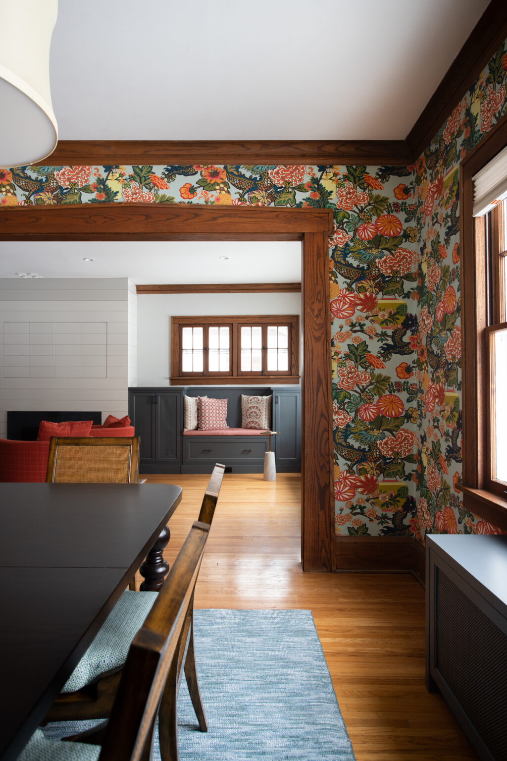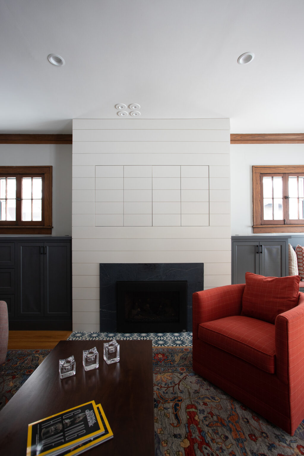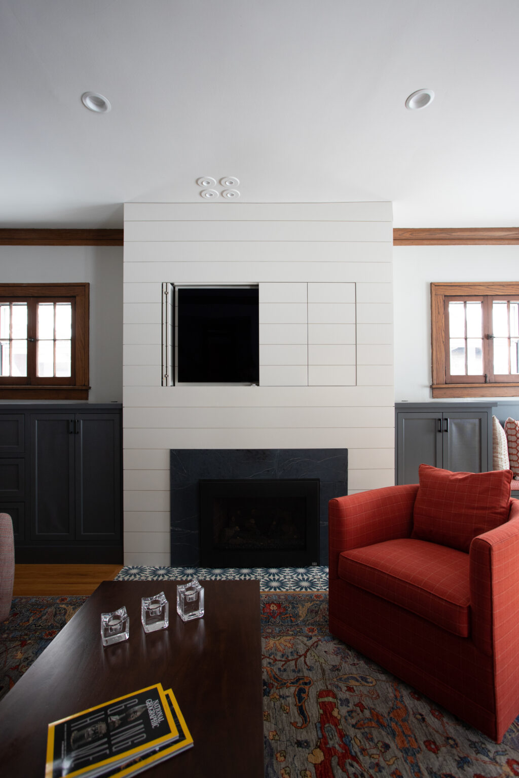 Thoughtful upgrades to this Lake Harriet home refresh and rejuvenate this vibrant interior. New cabinets and a contemporary gas fireplace in the living room create an inviting, stylish space that doesn’t sacrifice functionality, featuring a hidden TV and custom radiator covers. Updates in the kitchen include new countertops, a modern backsplash, and a custom banquet with a concealed workstation. A new door, custom bench, and heated floors transform the front entryway and mudroom into vibrant, storage-friendly spaces that complement the rest of the home.