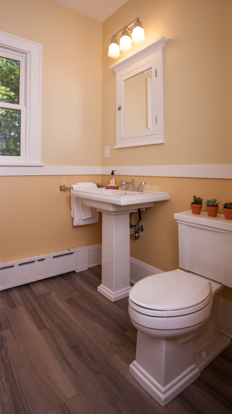 This 1900 home underwent thoughtful updates to enhance its function and flow for the family. A remodled kitchen with strong connections to the main living areas was the priority, while a new attached two-car garage and mudroom replaced the detached garage. Updates to the main-floor office, bath, and laundry refined earlier remodels, creating spaces that better suit the home’s character.