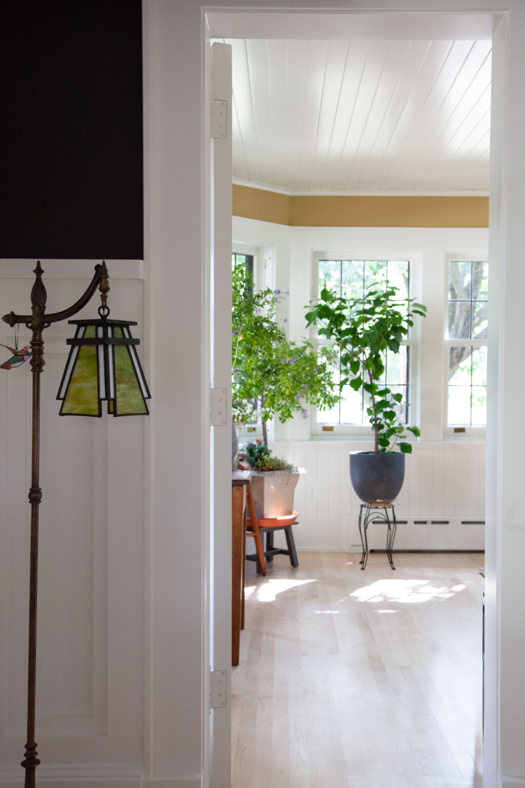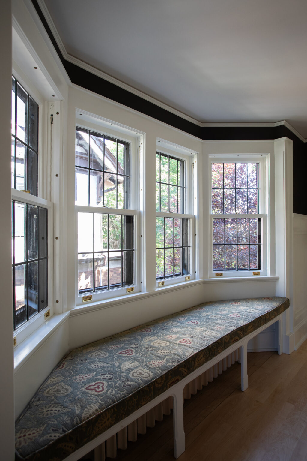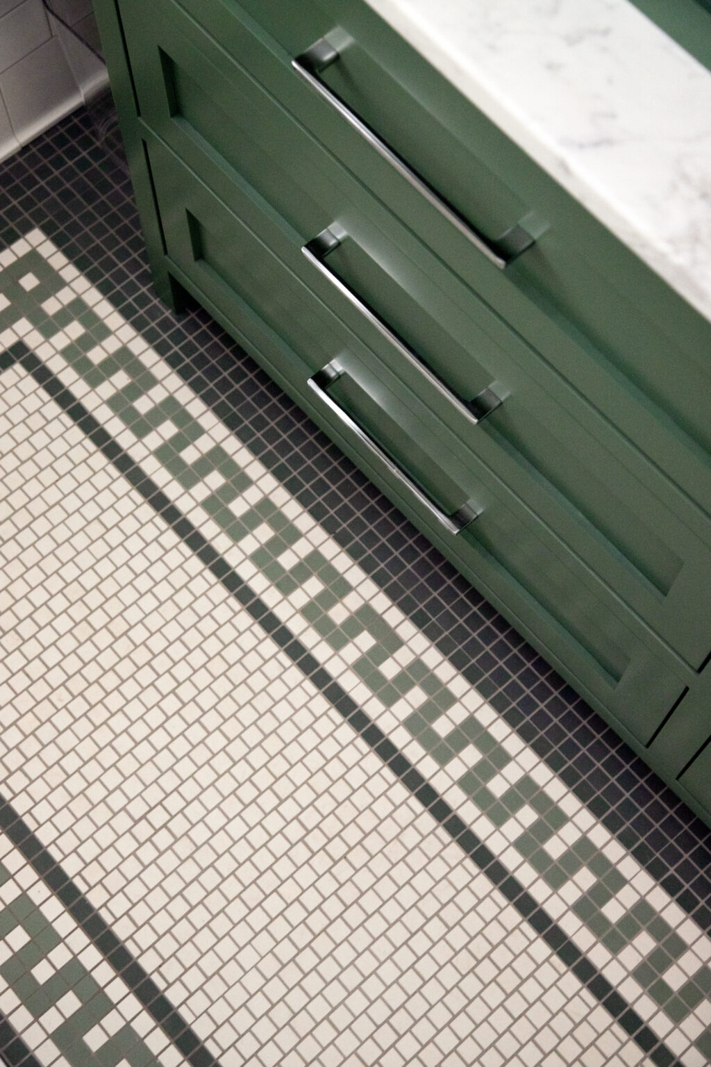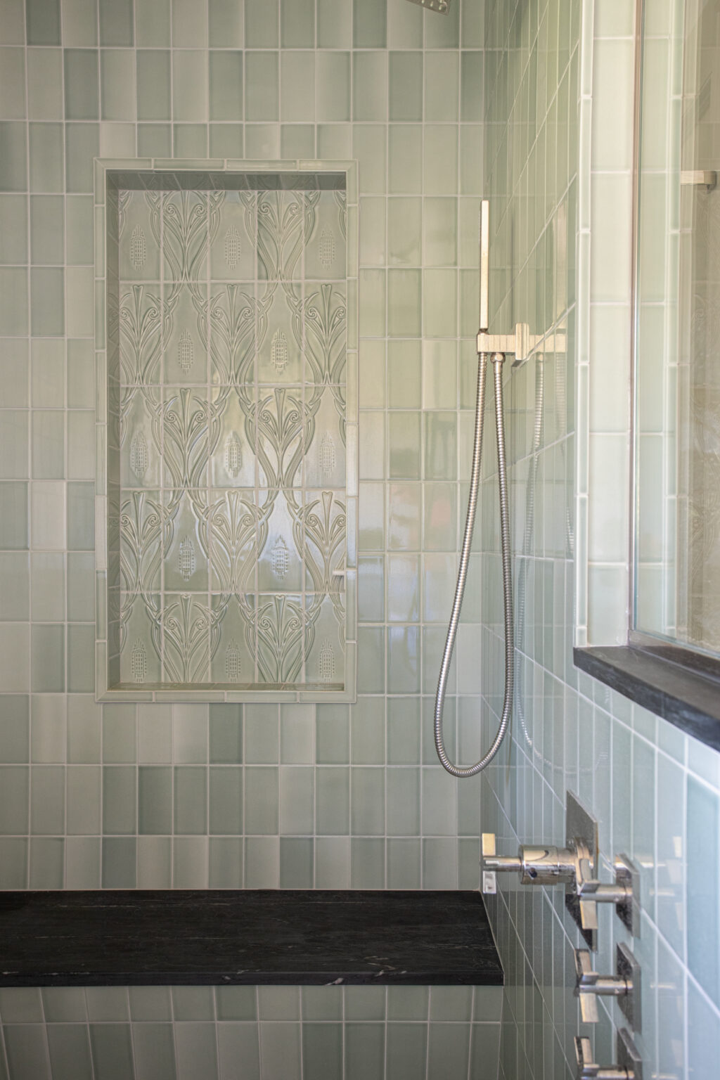 This St. Paul remodel reimagines the primary suite and second-floor bathroom while honoring the home’s original 1910 character. The primary suite was expanded with adjacent rooms, featuring crisp white wainscoting, dark accents, and Craftsman details throughout. The primary bathroom includes soapstone countertops and handmade sea-gloss tile, while the second-floor bathroom was reconfigured with historically accurate tiles and added storage.