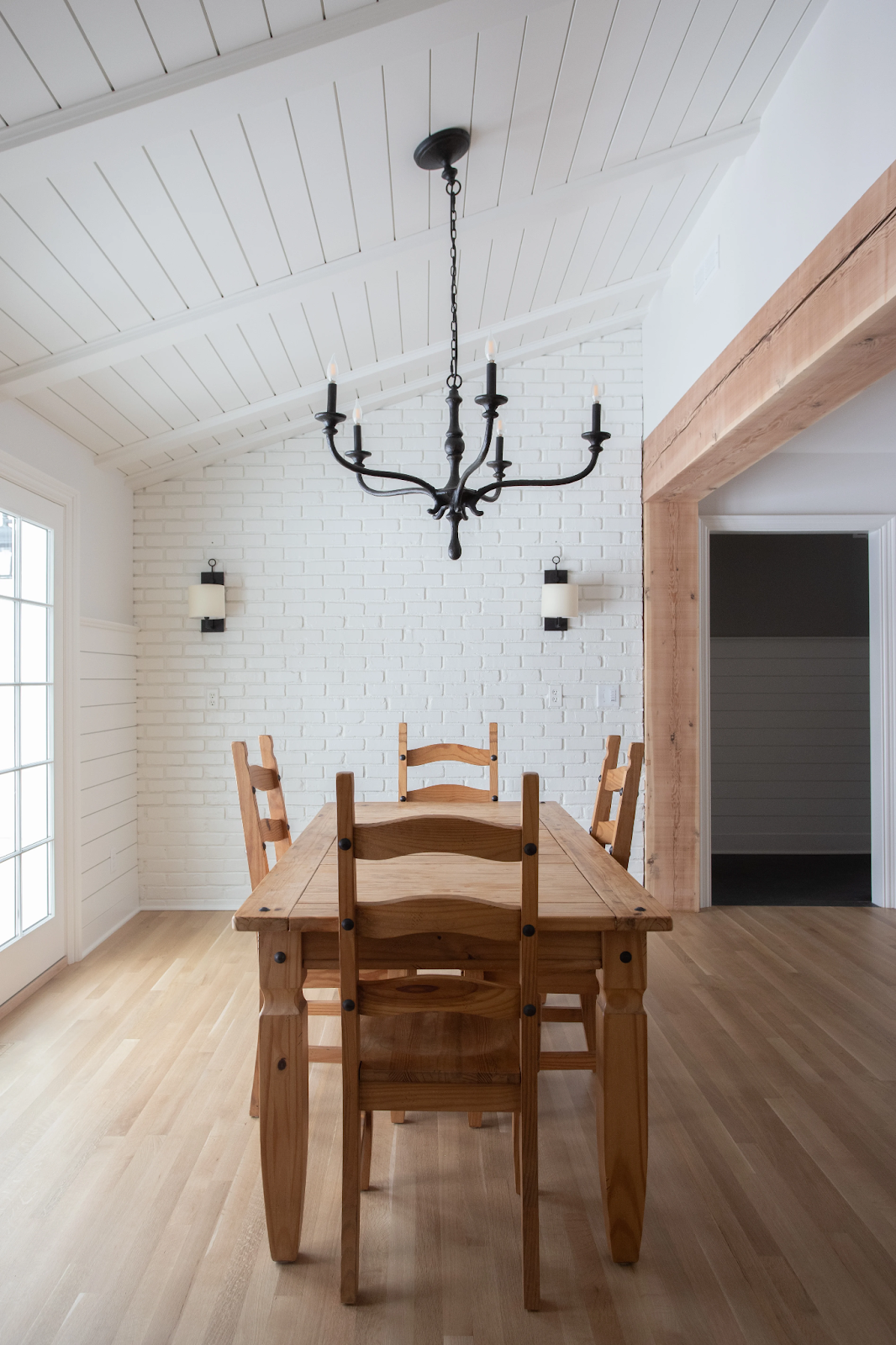 Each of our project examples demonstrates how a dedicated dining room supports celebrations while remaining practical for daily life. In the Stillwater Sanctuary dining room, rustic charm combines with functionality. Built-in storage and display shelves keep the space organized for entertaining, while reclaimed beams and nature-inspired elements define the room without interrupting the open-concept layout. A beaded chandelier anchors the room, creating warmth and whimsy for family meals and festive gatherings.